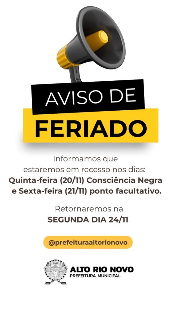 No dia 20/11/2025 (quinta-feira), não haverá expediente devido ao feriado nacional do Dia da Consciência Negra.